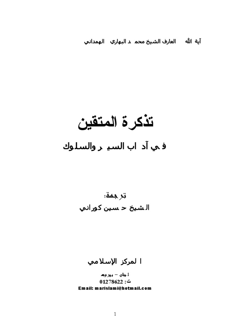 كتاب إلكتروني تذكرة المتقين في السير والسلوك للعارف الشيخ محمد البهاري الهمداني Youtube