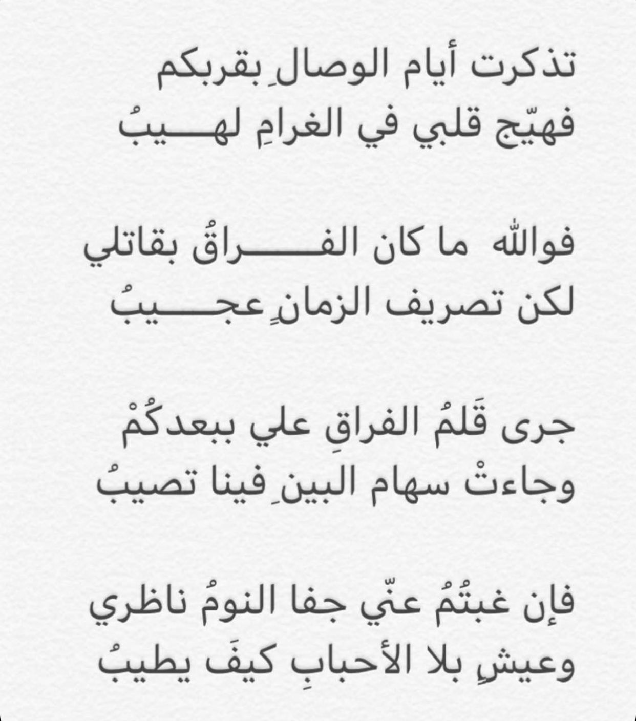 Nisreenaa Twitterissa تذكــرت أيام الوصال بقربــــــكم فهي ج قلبي في الغرام لهــــيب فوالله ما كان الفـــــــراق بقاتلي لكن تصريف الزمان عجـــــيب جرى ق لم الفراق علي ببعدك م وجاءت سهام البين فينا تصـــــيب فإن غبت م