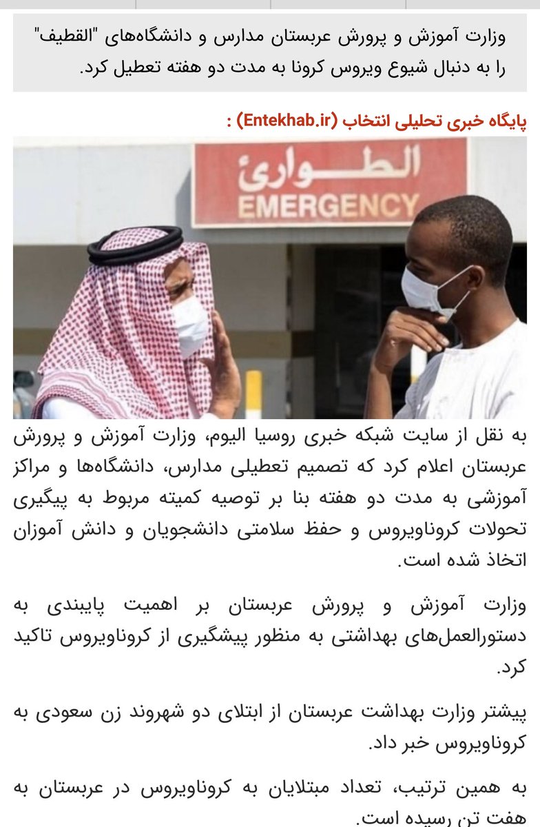 M Majed محمد مجيد A Twitter وسائل الإعلام في إيران تنشر عن إكتشاف حالات جديدة لمصابين بفيروس كورونا في السعودية ولكن لم تذكر ابدا بأن هذه الحالات كانت لأشخاص متواجدين بإيران وإيران لم