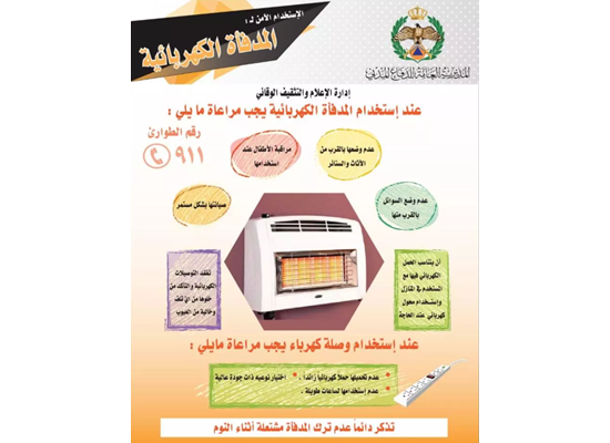 عند استخدام المدفأة الكهربائية يجب الدفاع المدني الاردني Facebook