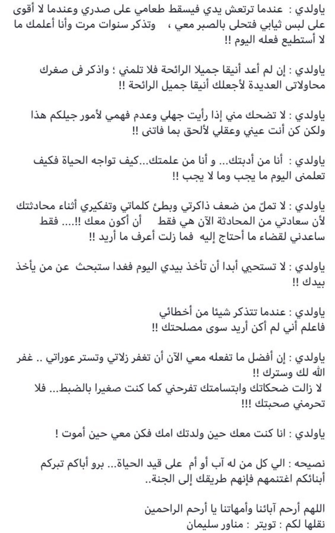 O Xrhsths مناور سليمان Sto Twitter يا ولدي العزيز فى يوم من الأيام ستراني عجوزا غير منطقيا فى تصرفاتى عندها من فضلك أعطينى بعض الوقت وبعض الصبر لتفهمنى Https T Co Sphzpkl3ms