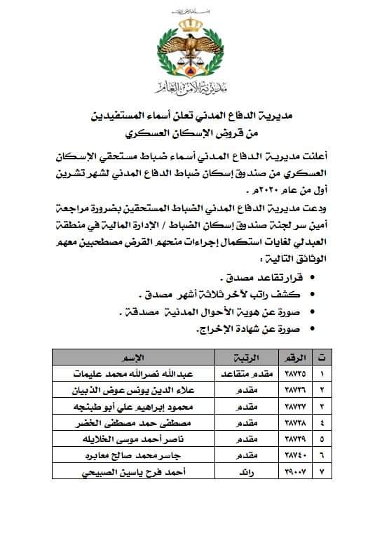 المستفيدون من قرض اسكان الدفاع المدني أسماء
