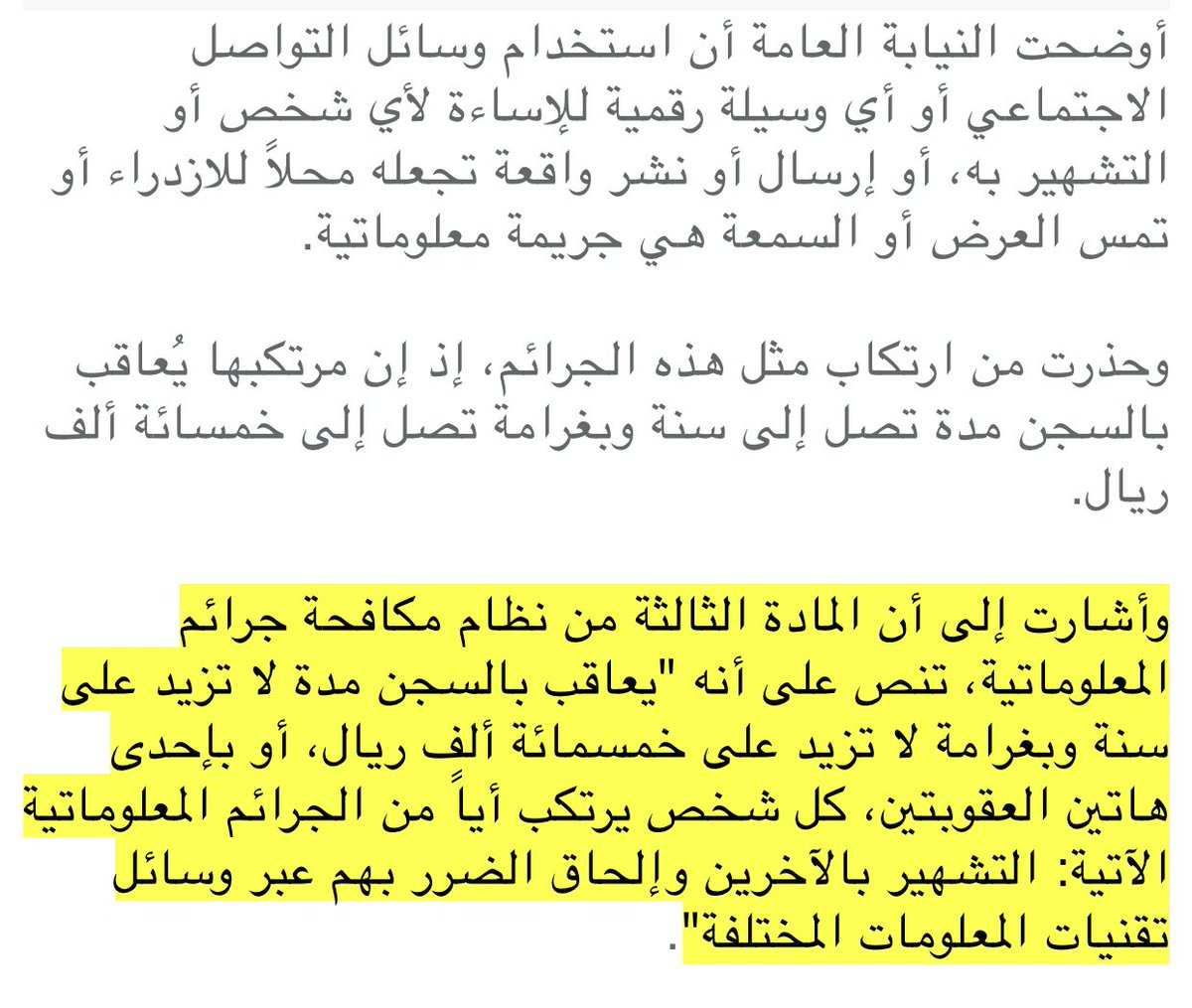 أفنان الدخيل Auf Twitter المادة الثالثة من نظام مكافحة الجرائم المعلوماتية نصت على عقوبة تلك الجرائم المعلوماتية Http T Co Oa3ekwnyg4