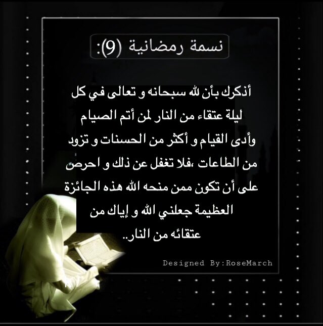 Rosemarch قابوس Twitterren 9 رمضان نسمات رمضانيه أذكرك بأن لله سبحانه و تعالى في كل ليلة عتقاء من النار لمن أتم الصيام و أدى القيام و أكثر من الحسنات و تزود