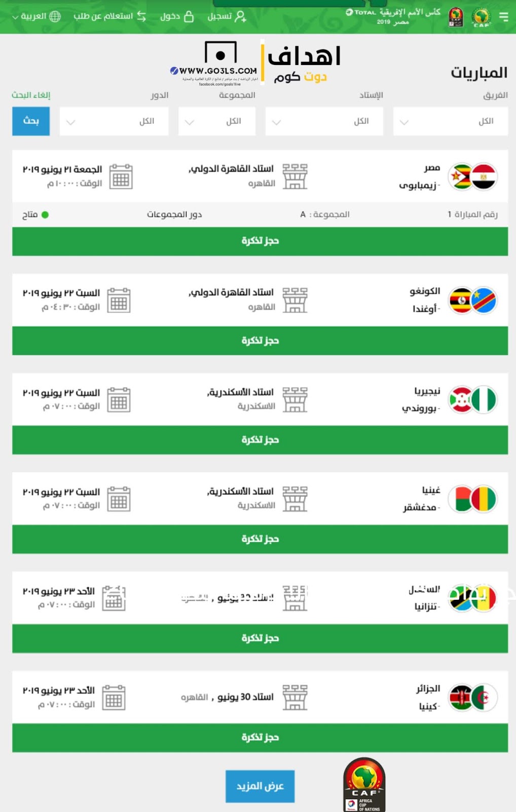 حجز تذاكر مباريات كأس الأمم الأفريقية مصر 2019 تذكرتي Tazkarti اونلاين سريع ا اهداف دوت كوم