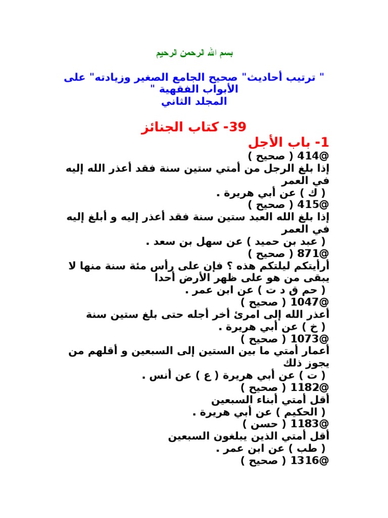 004 ترتيب أحاديث الجامع الصغير على الأبواب الفقهية