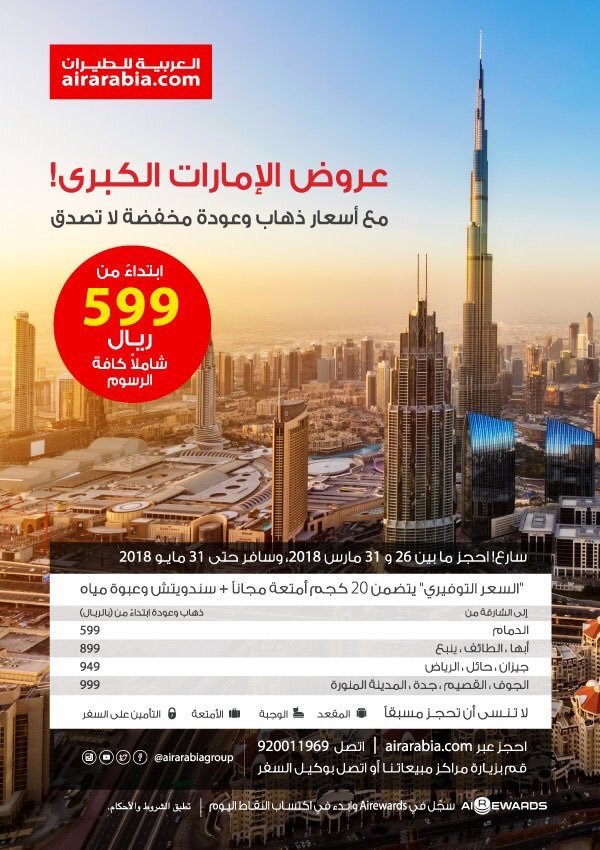 العربية للطيران تضيف 40 كيلو مجانا على الوزن المسموح به