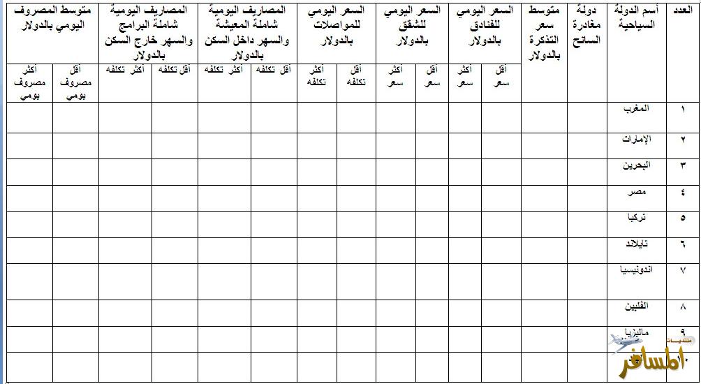 المشاركة في تحديد مصروف السايح اليومي المسافر