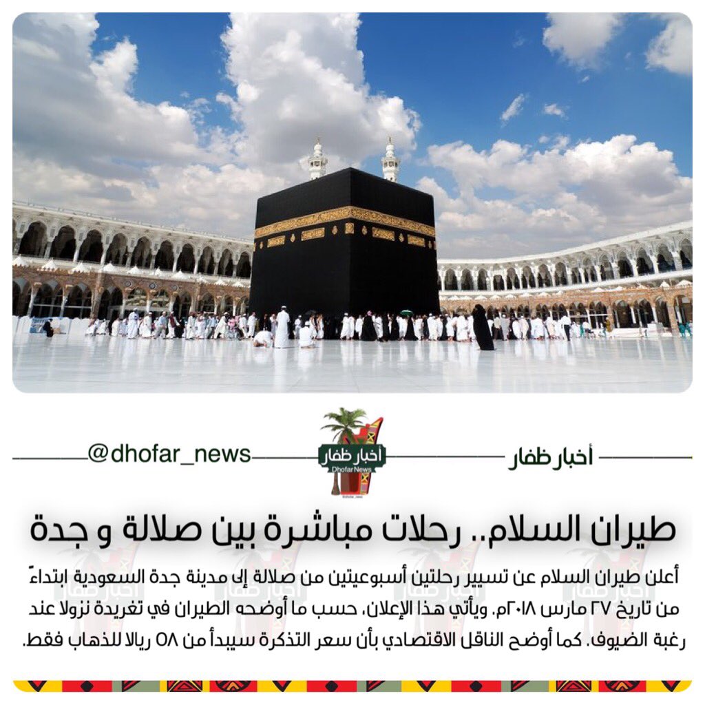 أخبار ظفار على تويتر طيران السلام رحلات مباشرة بين صلالة و جدة