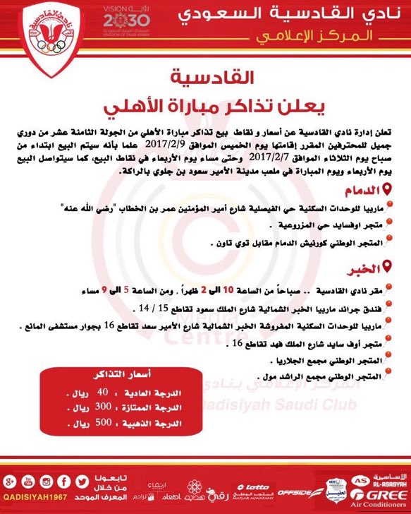 نادي الاتفاق On Twitter أسعار تذاكر مباراة الاتفاق القادسية يوم الخميس القادم ضمن الجولة الـ3 من دوري جميل 2017 2018